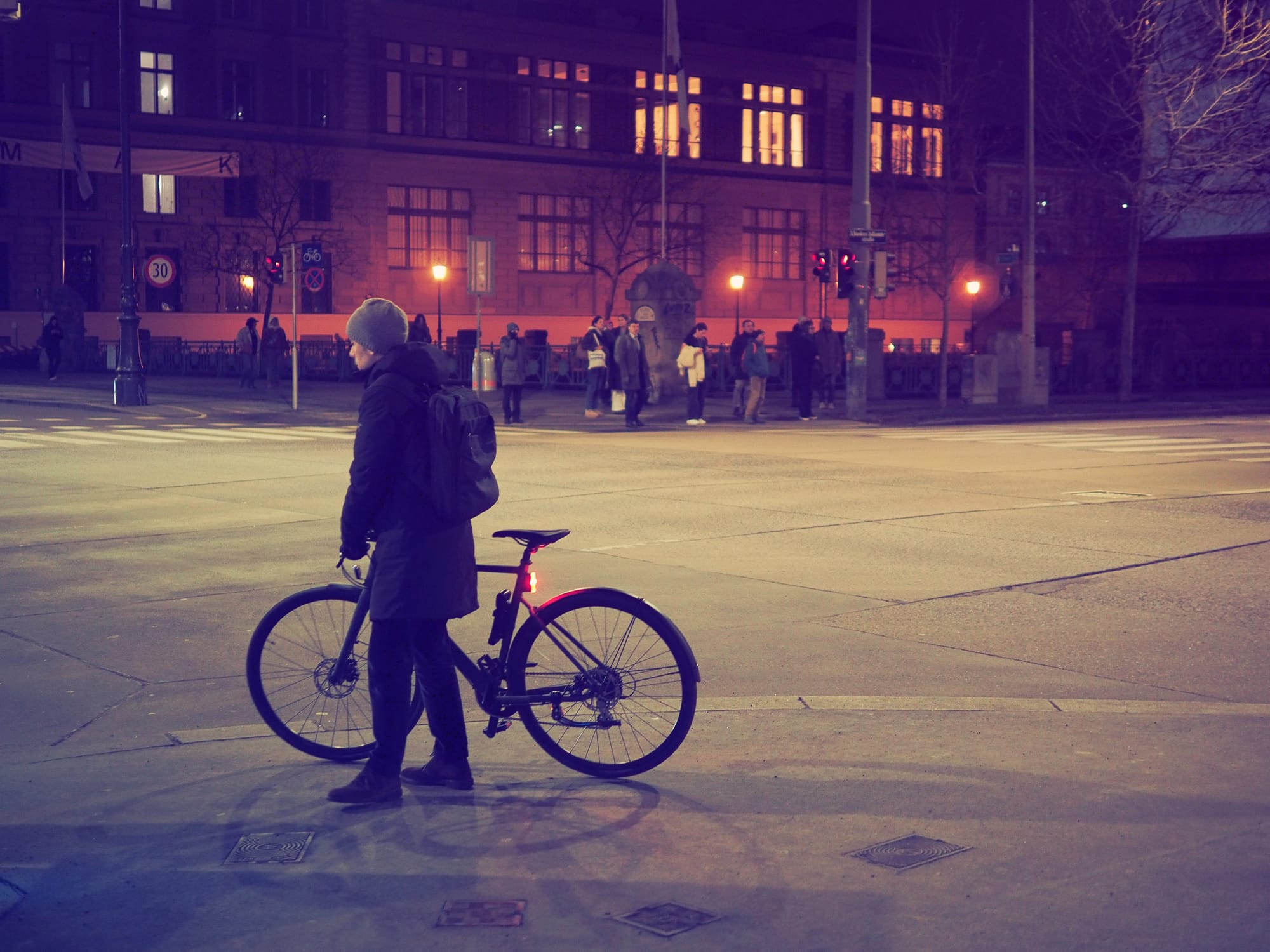 I followed a simple evening route through central Vienna, focusing on how different types of light behave at night rather than on specific landmarks.