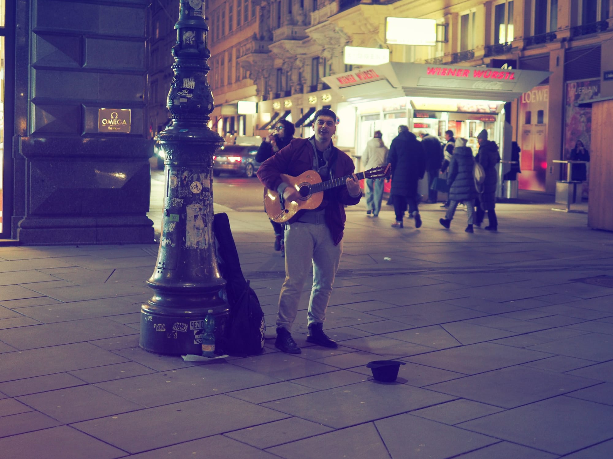 I started around Wien Mitte, where strong artificial light cuts through otherwise dark surroundings. It was a good starting point to see how the Vintage I ART filter handles bright highlights early on.